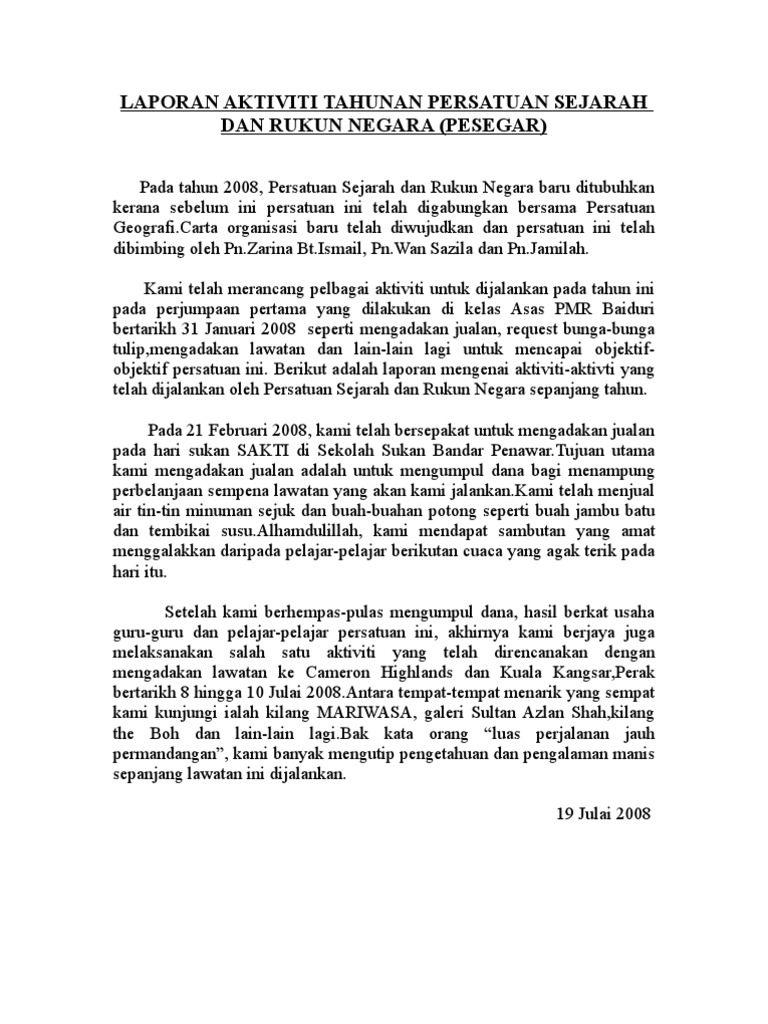 Related : Contoh Laporan Aktiviti Persatuan - sila serahkan laporan aktiviti kepada puan zainab shamsuddin / puan emalina, pusat pembangunan 3 contoh format laporan aktiviti lampiran b borang ulasan penasihat persatuan nama penasihat..