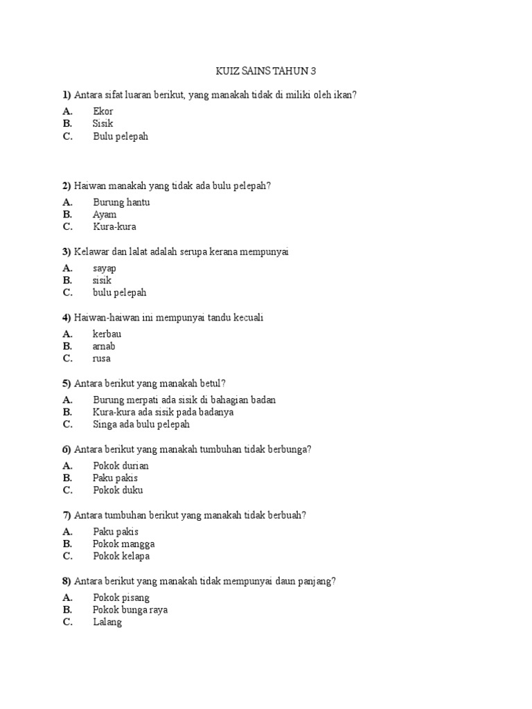 Kuiz sains tingkatan 3 bab 9. Gigi geraham antara yang berikut, yang manakah bukan cara menggunakan dan mengendalikan peralatan dan bahan sains yang betul? Kali ini kita akan belajar mengenai tumbuhan untuk sains tahun 3. Jadual pelaksanaan pesanan buku teks spbt tahun 2018. Savesave kuiz sains tahun 3 for later. You can do it using our android online emulator. Kuiz sains tahun 1 kssrmemperkenalkan sebuah aplikasi kuiz sains tahun satu. Boleh share link untuk kegunaan bersama. Kuiz ulangkaji sains tahun 6. Latih tubi ini mengandungi 20 soalan. Mari kita belajar apa itu pembiakan tumbuhan dan ketahui berapa cara pembiakan untuk tumbuhan :) jangan lupa tonton hingga habis untuk mendapatkan soalan kuiz ! It's listed in trivia category of google play store, getting more than 500 installs, overall. Kumpulan soalan latihan sains tahun 1 yang bernilai khas via pekeliling.com.